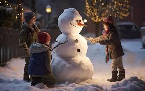 Il était une fois, dans un petit village enneigé, des enfants qui couraient dans les champs blancs, les joues rosies par le froid et les rires cristallins comme des grelots. Ils roulaient des boules de neige, empilaient les corps ronds, et coiffaient leur bonhomme d’un vieux chapeau noir. À ses bras de brindilles, ils accrochaient des cœurs découpés dans du papier, comme des promesses d’amour d’hiver.