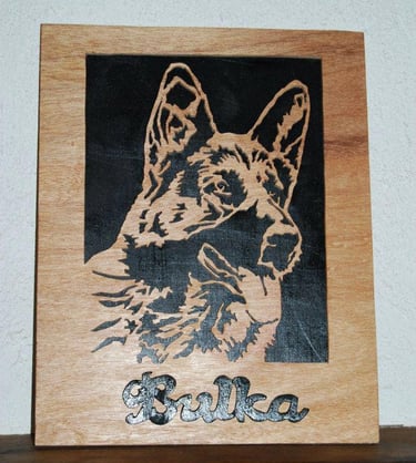 Je rêvais de créer des portraits animaliers réalistes, presque vivants. Je me suis dis aussi que cette passion pouvait aussi devenir une belle opportunité : offrir à quelqu’un le portrait de son compagnon à quatre pattes, personnalisé avec son nom, c’est bien plus qu’un cadeau. C’est un hommage. Un souvenir. Une déclaration d’amour gravée dans la matière. Une attention touchante pour ceux qui nous sont chers.