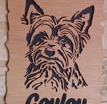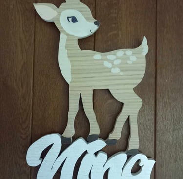Chaque demande est une rencontre, chaque création est une histoire. N’hésitez pas à me contacter pour imaginer ensemble votre cadeau personnalisé : une suspension, un prénom en bois, une enseigne, un message gravé… Je suis à votre écoute pour donner vie à vos idées les plus tendres.